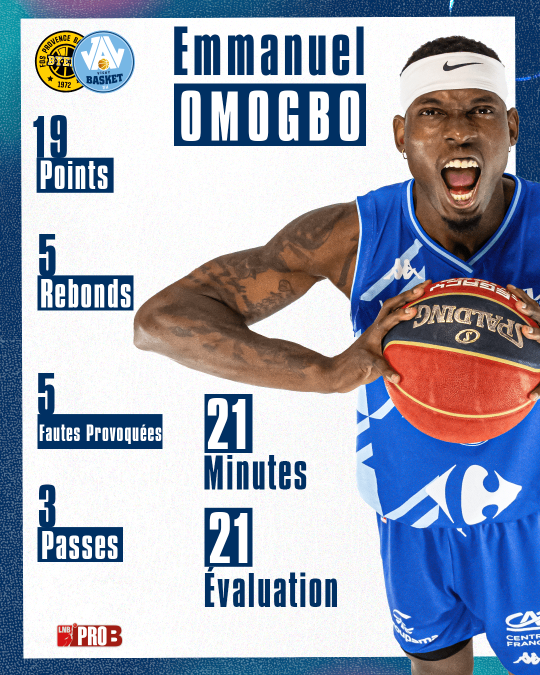 Continuer sur ce rythme. Tel est le mot d’ordre pour nos Vichyssois sur ce début de championnat. Le match de Vendredi dernier a été un exemple type de la capacité à rebondir et à encaisser prônée par coach Vizade : après une contre-performance face à La Rochelle en ¼ de Finale de Leaders Cup, il fallait réagir à domicile contre des Angevins venus en bord d’Allier avec la ferme intention d’imposer leur puissance physique. Chose faite dans un match où il a fallu batailler durant 40 minutes, et emmagasiner le maximum de confiance avant 2 matchs loin de nos bases. Avec un match spécial Halloween, gare aux mauvaises surprises dans la cité phocéenne ! Présentation de la rencontre par KJ Smith.