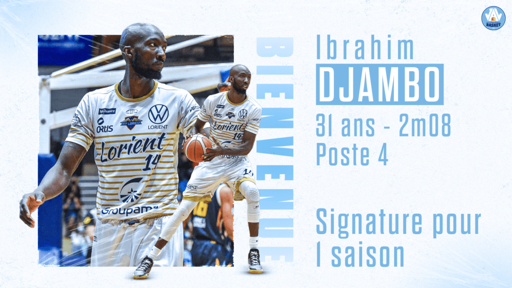Nouvelle addition au sein de l’effectif vichyssois avec l’arrivée d’Ibrahim Djambo pour 1 saison. Le joueur possédant une double nationalité, malienne-américaine, a d’abord fait ses classes aux États-Unis avant de lancer sa carrière professionnelle en Espagne, puis en Tunisie. Il est arrivé en France en 2018 en NM2 à Calais et a tapé dans l’oeil d’Angers qui l’a recruté la saison suivante en NM1. S’en est suivi 4 saisons dans cette division avec une réelle capacité à scorer (toujours plus de 11,5 points de moyenne) et à être présent au rebond (minimum 5 rebonds) du haut de ses 2m09. Il a d’ailleurs évolué avec une nouvelle recrue de cette saison, Sébastien Cape, lors de la saison 2021-22, sous les couleurs de Lorient!