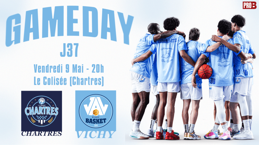 Dernier déplacement de la saison régulière pour nos Vichyssois qui se rendent au sein de la magnifique salle du Colisée (de Chartres). Une journée avec des enjeux importants dans l’optique des play-in ! Coup d’envoi de la rencontre à 20h à suivre en direct et gratuitement sur LNB TV.