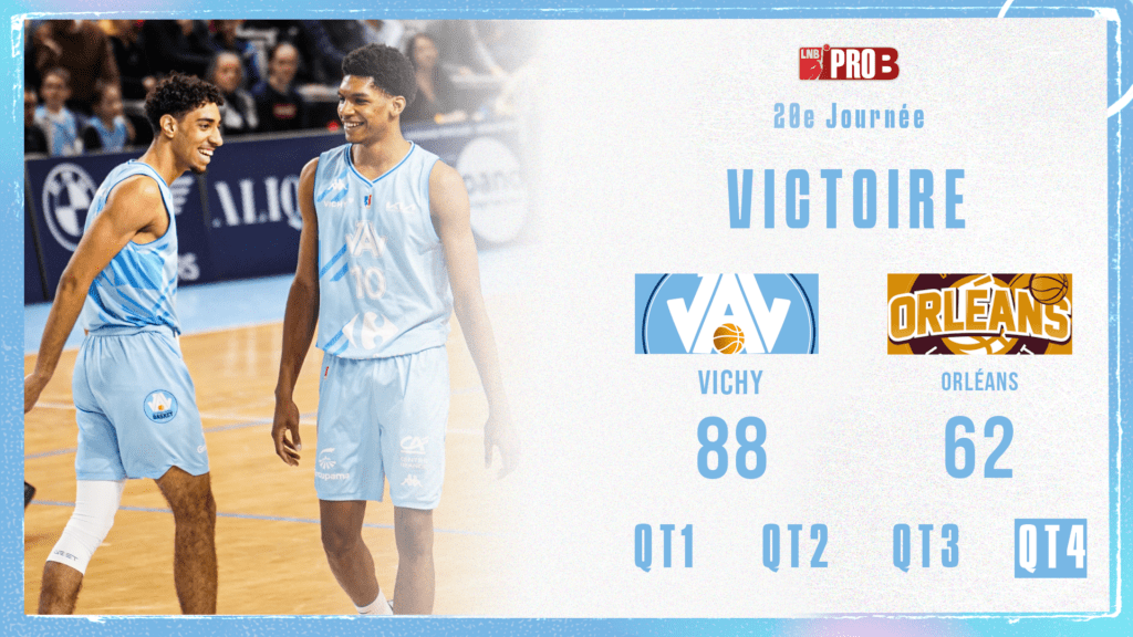 Côté Vichyssois, c’est encore une fois collectivement que ce 13e succès a été validé face à Boulazac (84-94). Le maintien étant souvent à 14 victoires, ce seuil symbolique est à valider le plus rapidement possible pour se projeter sur le reste de la saison. Les joueurs de coach Vizade occupant actuellement la première place aux points marqués, rebonds, évaluation, interceptions et contres, se savent attendus pour chaque match.