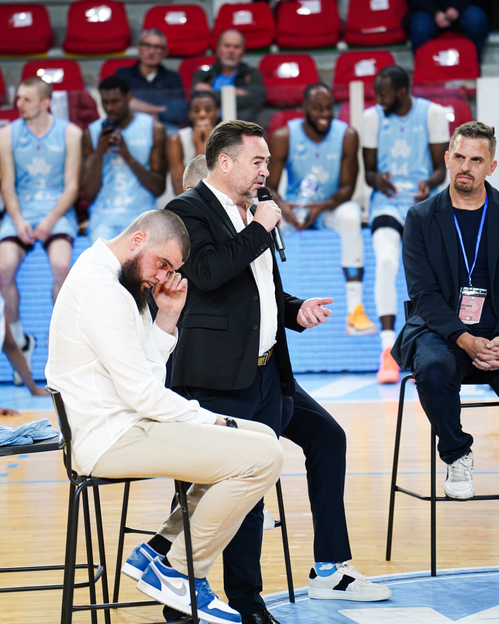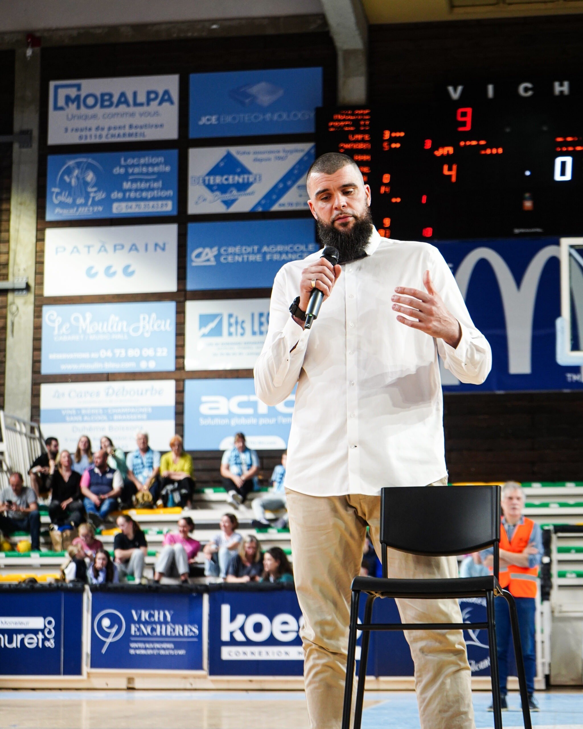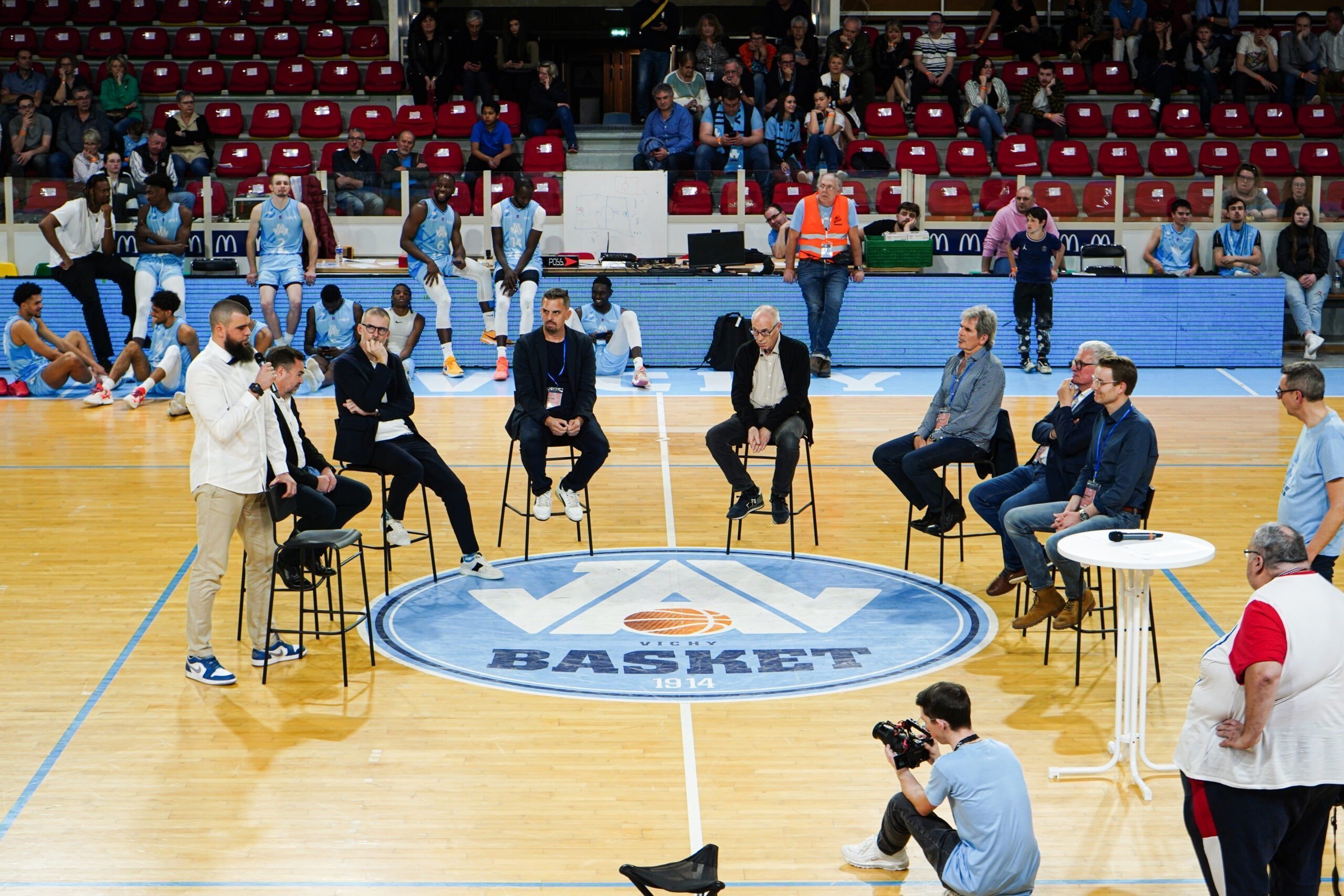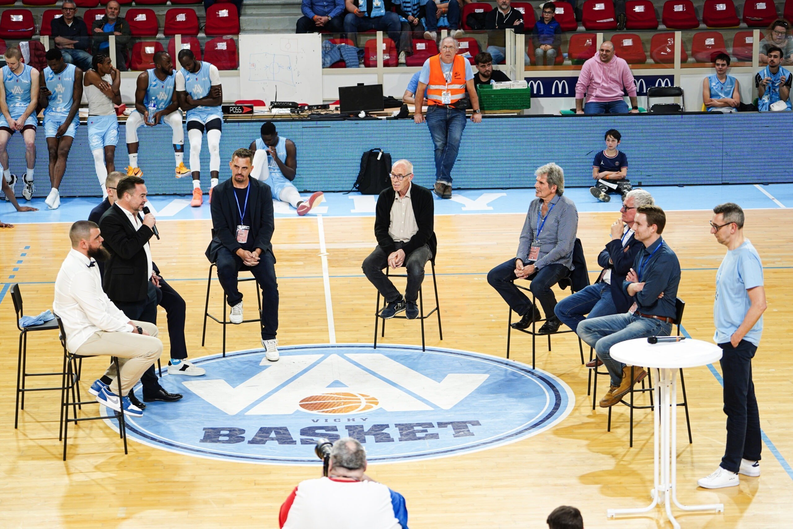 Ce Vendredi 22 Mars, c’était aussi l’occasion de se remémorer la carrière de Charles-Henri avec des personnes ayant compté pour lui avec des témoignages poignants. Jean-Luc Martin à Autun en Nationale 1, Claude Bergeaud à Pau, Jean-Michel Sénégal à la JL Bourg. Mais aussi des anciens coéquipiers comme David Denave avec lequel il a partagé 255 fois les parquets (Pau, Saint-Vallier et Vichy). Notre actuel entraineur Guillaume Vizade et actuel Président Yann Le Diouris étaient aussi de la partie lors de la cérémonie. Une trentaine de personnes n’ayant pas pu se déplacer pour cet hommage ont tenu à adresser à notre ancien numéro 34 leurs félicitations par vidéo.
