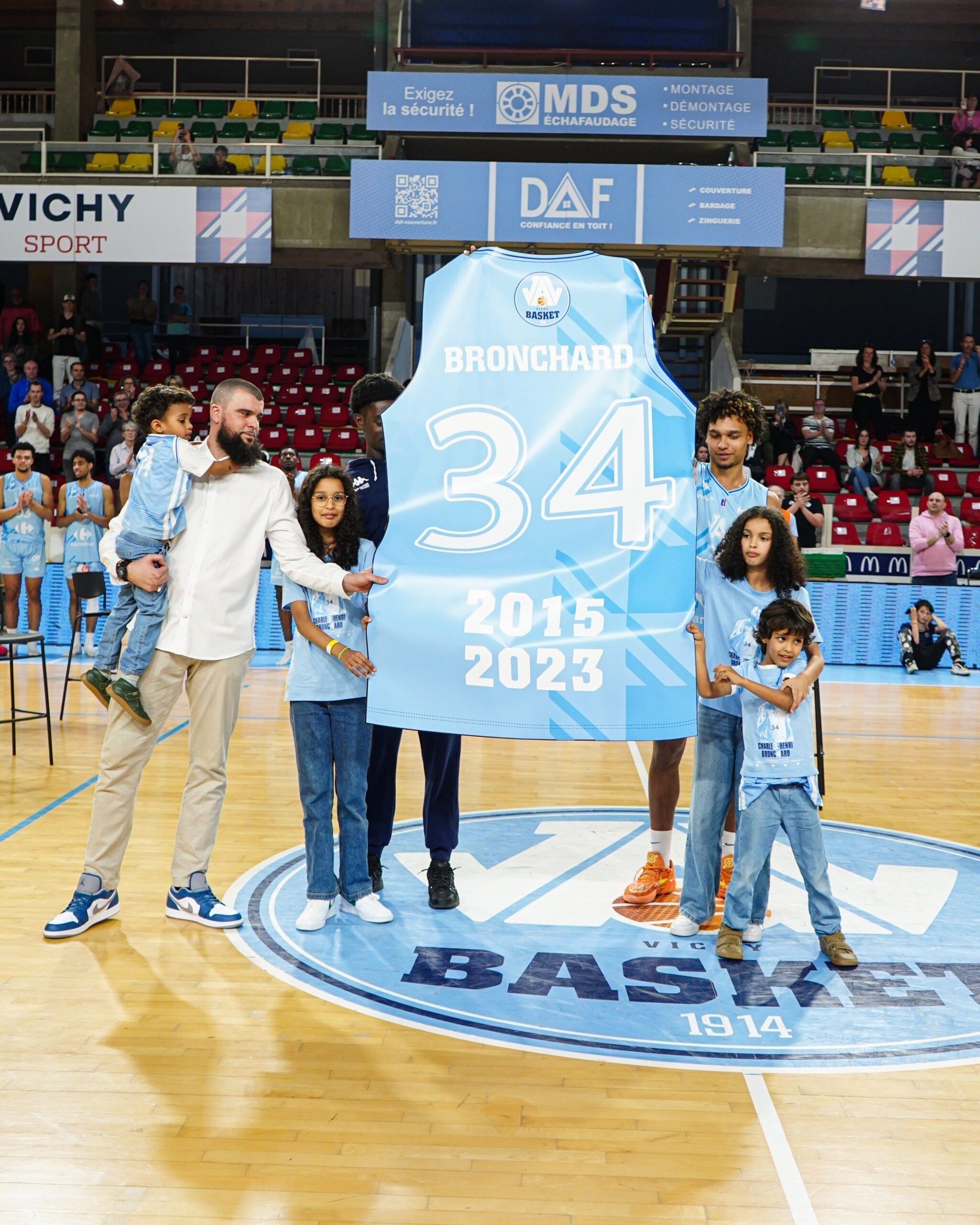 Après 273 matchs disputés sous le maillot du club (1er du club), 2903 points marqués (1er du club) et 1 132 rebonds (1er du club), notre numéro 34 Charles-Henri Bronchard avait décidé de mettre un terme à sa carrière l’année dernière après le 1/4 de Finale de playoffs face au Champagne Basket. Un arrêt qui n’en est pas réellement un puisque Charles continue l’aventure à Vichy et au sein du club avec désormais les rênes de l’équipe U18. Une suite logique pour ce joueur qui a toujours eu une âme de coach au long de sa carrière, et une reconversion préparée depuis de nombreuses années.
