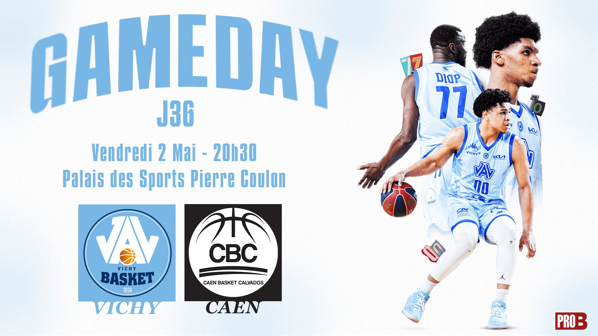 36e épisode du feuilleton PROB avec la réception du Caen Basket Calvados ce Vendredi 2 Mai au Palais des Sports Pierre Coulon. Une rencontre cruciale dans la course au play-in avec un adversaire avec une victoire de retard seulement (et un point-average de -6). C’est donc un match à gagner pour espérer une fin de saison bonus !