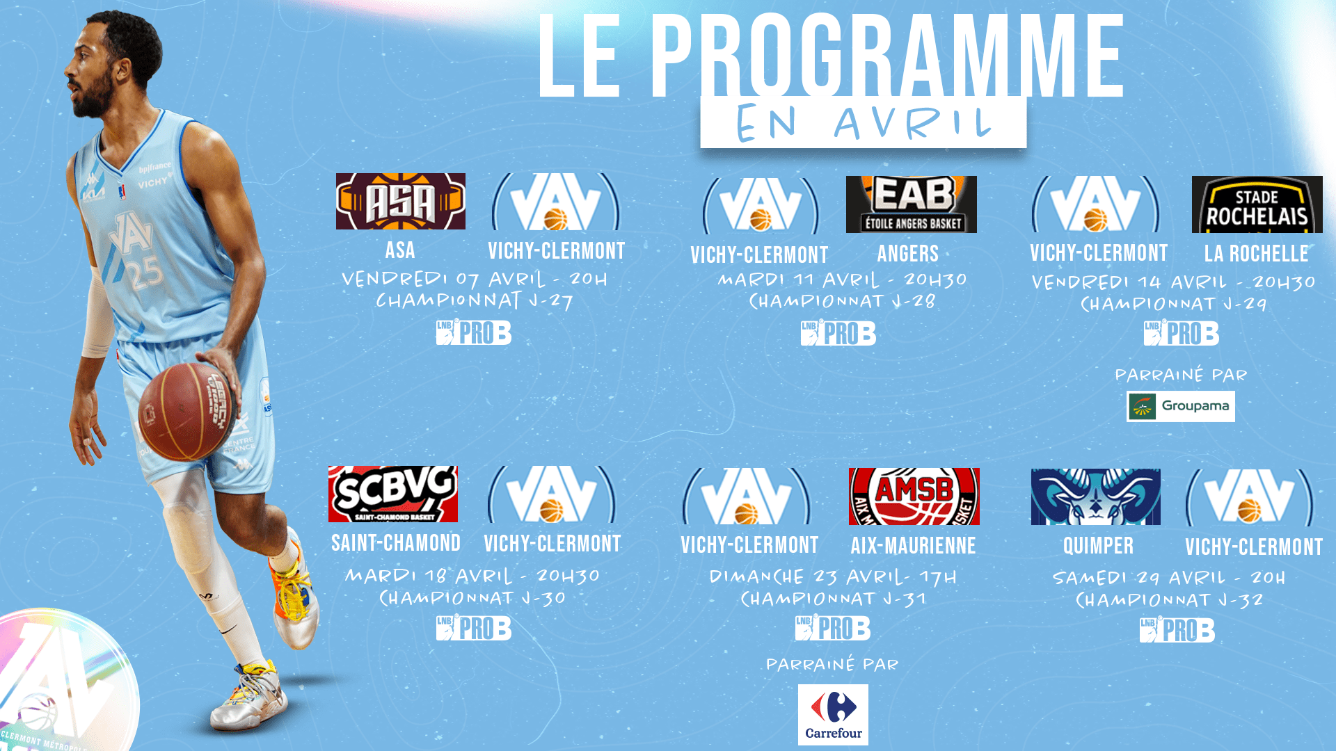- Vichy-Clermont / Angers le Mardi 11 Avril à 20h30 (rencontre parrainée par Groupama)