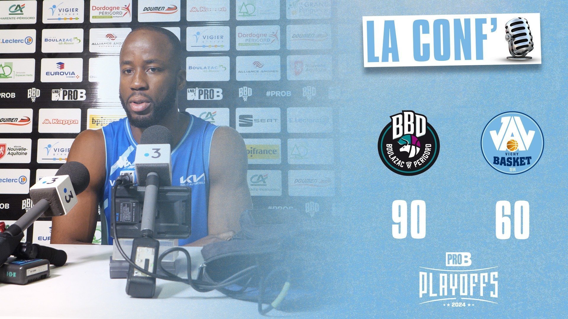 Retrouvez Cédric Bah et Guillaume Vizade en conférence de presse après la 1/2 Retour face à Boulazac (90-60), cliquez ici pour voir la vidéo