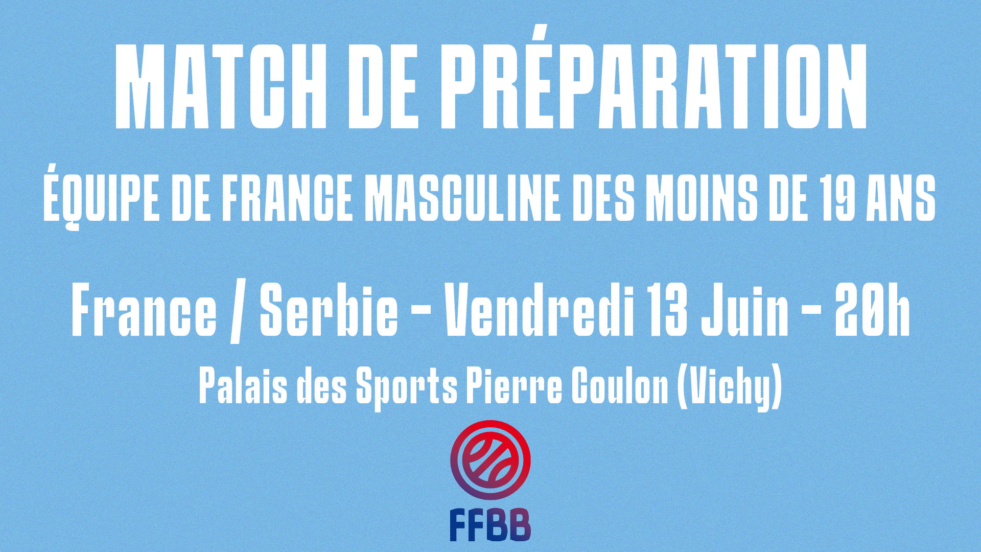 Dans le cadre de la préparation du Mondial U19 qui se déroulera du 28 Juin au 6 Juillet, l’équipe de France des moins de 19 ans a pris ses quartiers à Vichy depuis le 2 Juin. L’équipe coachée par Ruddy Nelhomme terminera son stage de préparation de deux semaines par un match amical face à la Serbie ce Vendredi 13 Juin à 20h au Palais des Sports Pierre Coulon.